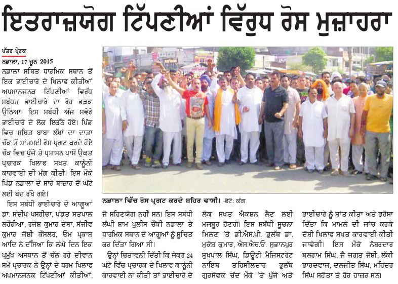 ਪ੍ਰਕਾਸ਼ਿਤ ਹੋਈ ਇਸ ਖਬਰ ਅਨੁਸਾਰ ਨਡਾਲਾ (ਕਪੂਰਥਲਾ) ਵਿਖੇ ਇੱਕ ਸਿੱਖ ਪ੍ਰਚਾਰਕ ਵਲੋਂ