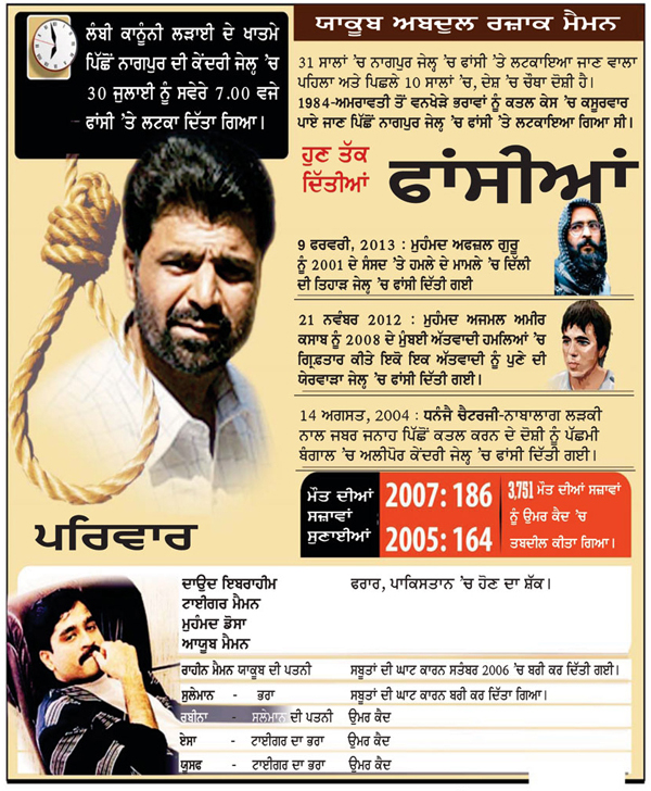 ਸਵੇਰੇ 7 ਵਜੇ ਸਾਕੂਬ ਮੈਮਨ ਨੂੰ ਫਾਂਸੀ ਤੇ ਚੜਾ ਦਿੱਤਾ ਗਿਆ,