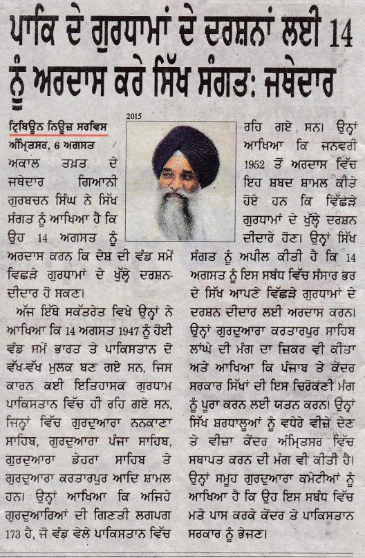 ਜੱਥੇਦਾਰ ਸਾਹਿਬ ਜਾਰੀ ਕਰਨਗੇ ? ਅਤੇ, 15 ਅਗਸਤ ਨੂੰ ਇਸ ਨਿਮਿਤ ਪੰਥ ਨੂੰ ਅਰਦਾਸ