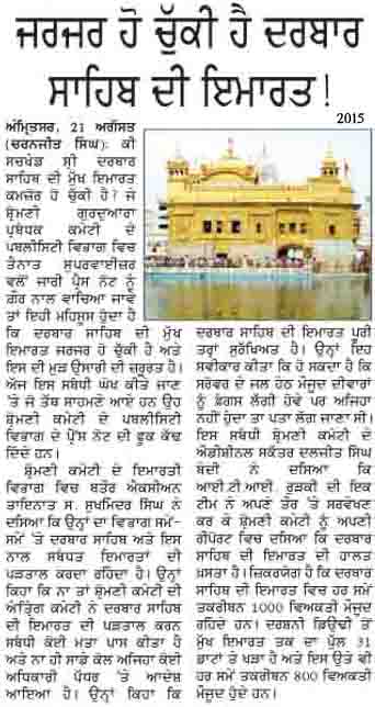 ਉੱਪਰ ਬਣੀ ਹੋਈ ਤਖ਼ਤ ਸਾਹਿਬ ਦੀ ਇਮਾਰਤ ਦੀਆਂ ਬੁਨਿਆਦੀ ਕੰਧਾਂ ਦੀ ਕਮਜ਼ੋਰੀ ਤਾਂ ਸ਼੍ਰੋਮਣੀ