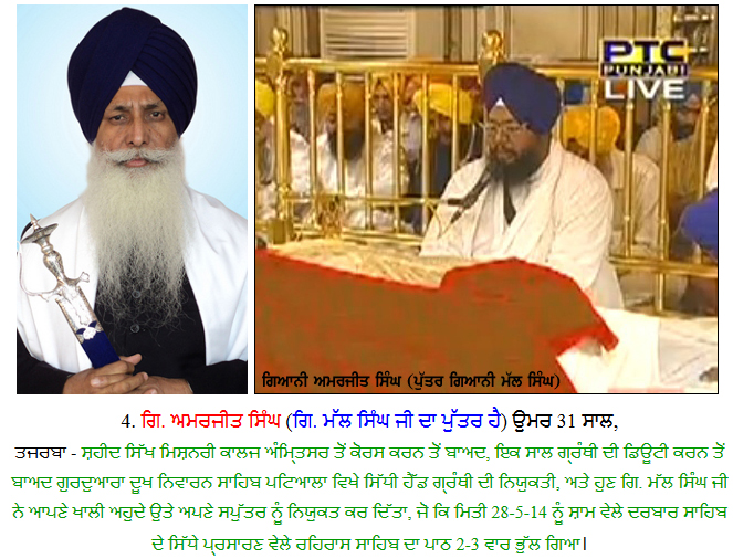 ’ਤੇ ਆਪਣੇ ਪੁੱਤਰ ਨੂੰ ਸ੍ਰੀ ਦਰਬਾਰ ਸਾਹਿਬ ਦਾ ਗਰੰਥੀ ਨਿਯੁਕਤ ਕਰਵਾ ਦਿੱਤਾ। ਜਦਕਿ ਉਹ