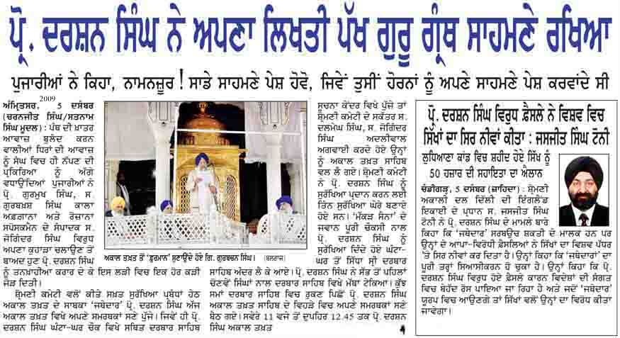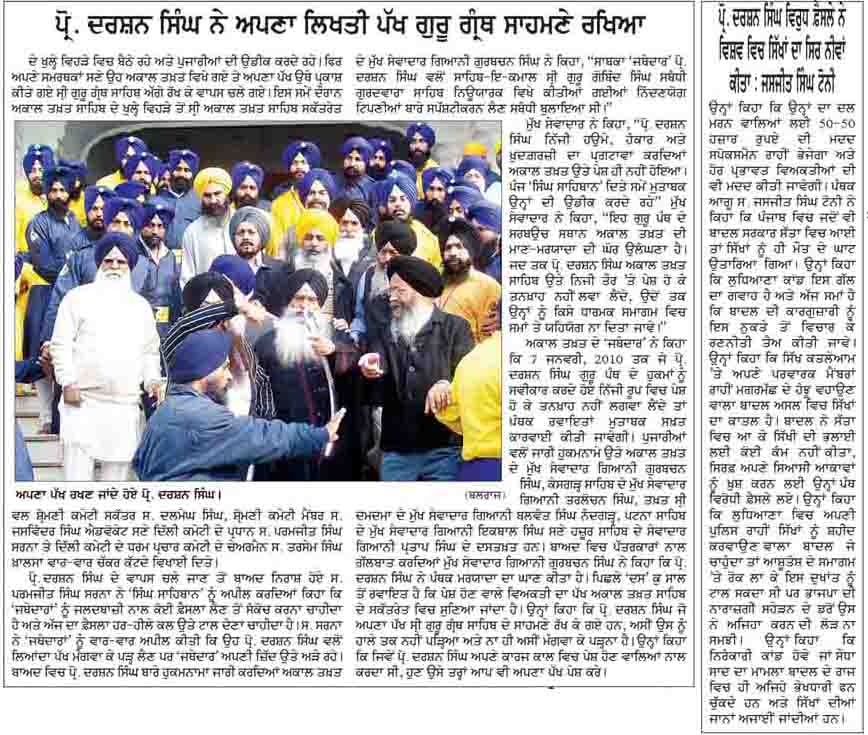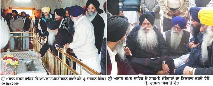 ਪ੍ਰੋ. ਦਰਸ਼ਨ ਸਿੰਘ ਅਕਾਲ ਤਖ਼ਤ 'ਤੇ ਸਿੱਖ ਸੰਗਤ ਦੇ ਸਾਹਮਣੇ ਆਪਣਾ ਸਪਸ਼ਟੀਕਰਣ ਲੈ ਕੇ