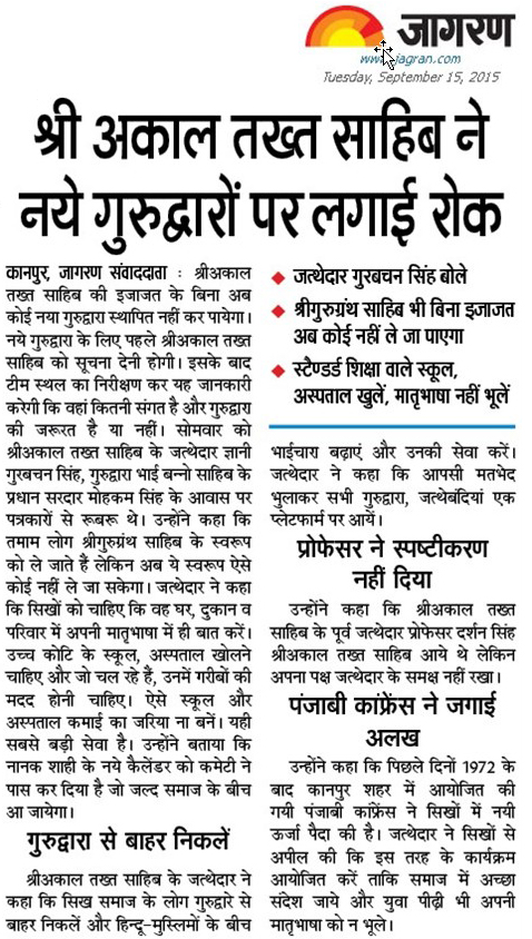 ਜਾਗਰਣ, ਕਾਨਪੁਰ ਅਖਬਾਰ ਨੂੰ ਇਹ ਬਿਆਨ ਦਿਤਾ ਹੈ ਕਿ, "ਅਕਾਲ