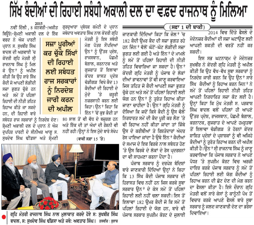 ਕਿਰਦਾਰ ਹੈ। ਜੇ ਸੱਚ ਮੁੱਚ ਬਾਦਲ ਬੰਦੀ ਸਿੱਖਾਂ ਦੀ ਰਿਹਾਈ ਵਾਸਤੇ ਕੁੱਝ ਕਰਨਾ ਚਾਹੁੰਦੇ