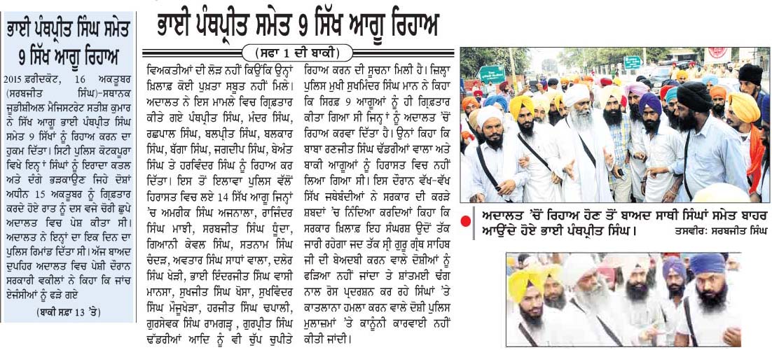 ਨੌ ਸਿੱਖ ਆਗੂ ਰਿਹਾਅ