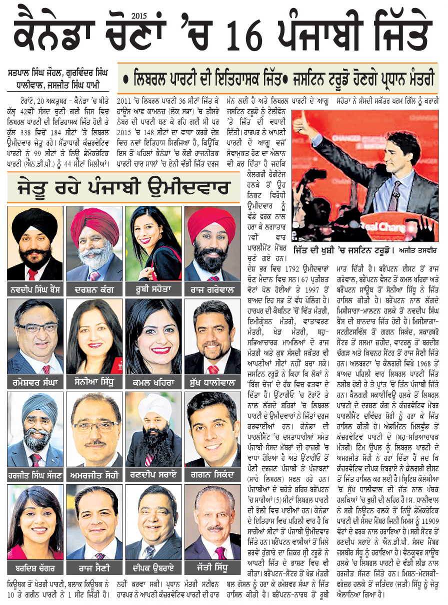 The 17 Indo-Canadians belong to the Liberal Party, which gained a clear