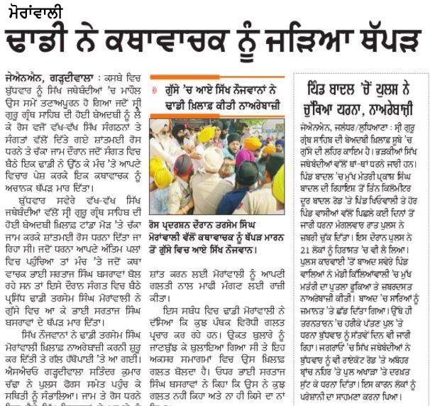 ਪਾੜ੍ਹਨ ਵਾਲੇ ਮੋਰਾਂਵਾਲੀ ਨੂੰ... ਮੋਰਾਂਵਾਲੀ ਨੇ ਭਾਈ ਸਰਤਾਜ ਸਿੰਘ ਦੇ ਥੱਪੜ ਮਾਰਿਆ