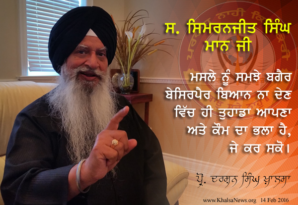 ਫ਼ਰਵਰੀ 2016 ਨੂੰ ਸਪੋਕਸਮੈਨ ਅਖਬਾਰ ਵਿੱਚ ਸ. ਸਿਮਰਨਜੀਤ ਸਿੰਘ ਮਾਨ ਵੱਲੋਂ ਫਤਿਹਗੜ