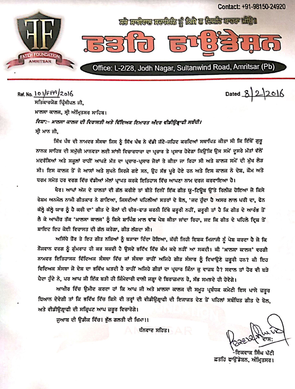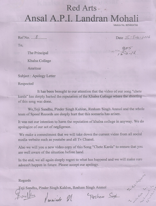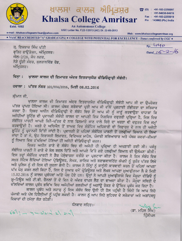 ਗਈ ਸੀ। ਕਾਲਜ ਨੇ ਇਹਨਾਂ ਤੇ ਕਾਨੂੰਨੀ ਕਾਰਵਾਈ ਕਰਨ ਤੋਂ