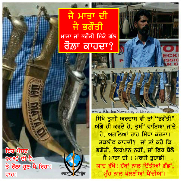 ਪਿੱਟਦੇ ਹੋ ਭਾਈ, ਇਹ ਕਿਰਪਾਨ 'ਤੇ "ਜੈ ਮਾਤਾ ਦੀ" ਲਿਖਿਆ ਹੋਇਆ ਹੈ,