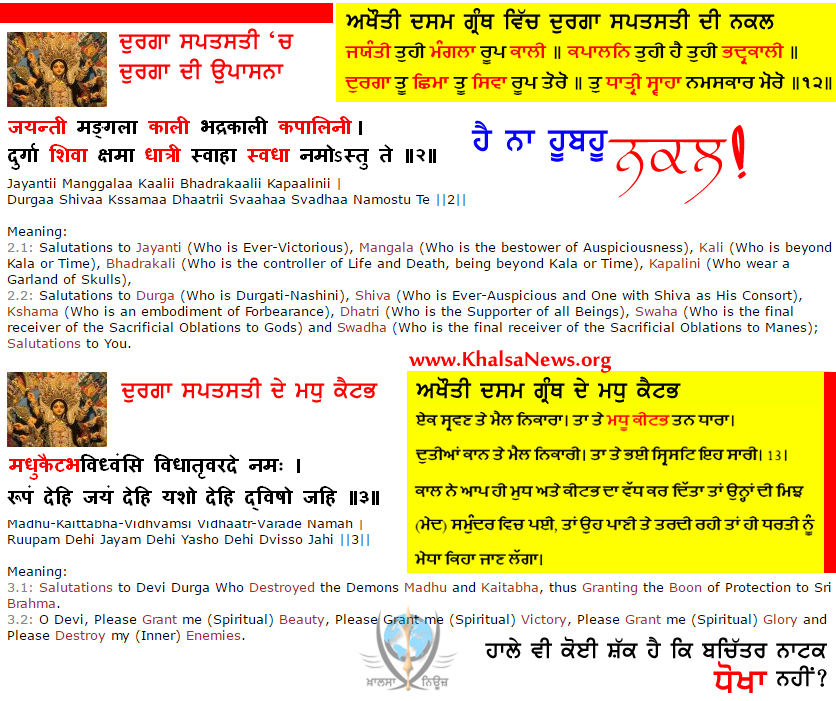 ਨਾਟਕ ਦੀ ਬੇਬੇ ਦੀ ਇਹ ਉਸਤਿਤ "ਦੁਰਗਾ ਸਪਤਸਤੀ" ਦੇ ਸ਼ਲੋਕ ਦੀ ਨਕਲ ਹੈ, ਉਸ