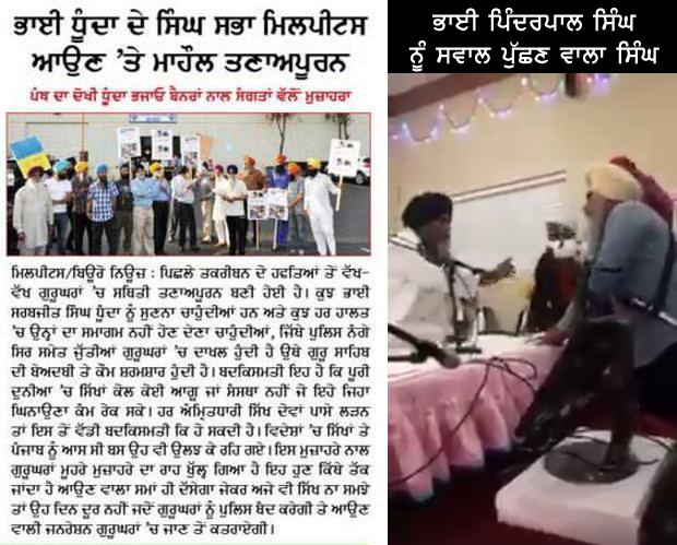 ਕੁਝ ਸਿੰਘਾਂ ਵਲੋਂ ਭਾਈ ਸਰਬਜੀਤ ਸਿੰਘ ਧੁੰਦਾ ਦੇ ਵਿਰੋਧ ਨਾਲ ਕਰ ਰਹੇ ਹਨ। ਸਭ ਤੋਂ