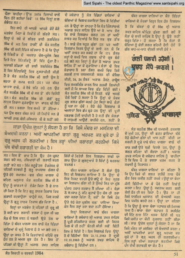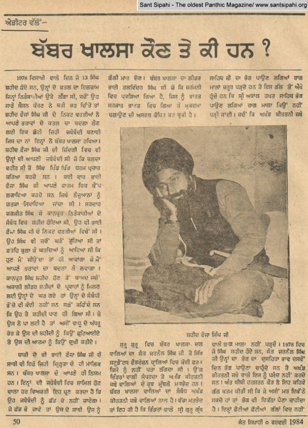 -: ਸੰਤ ਸਿਪਾਹੀ ਮੈਗਜ਼ੀਨ ਫ਼ਰਵਰੀ 1984