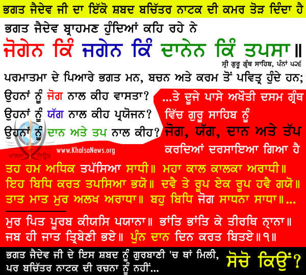ਹੈ, ਪਰ ਦੂਜੇ ਪਾਸੇ ਅਖੌਤੀ ਦਸਮ ਗ੍ਰੰਥ ਵਿੱਚ ਇਹ ਗੁਰੂ ਦੇ ਨਾਮ ਨਾਲ ਜੋੜਿਆ ਗਿਆ... ਕੀ