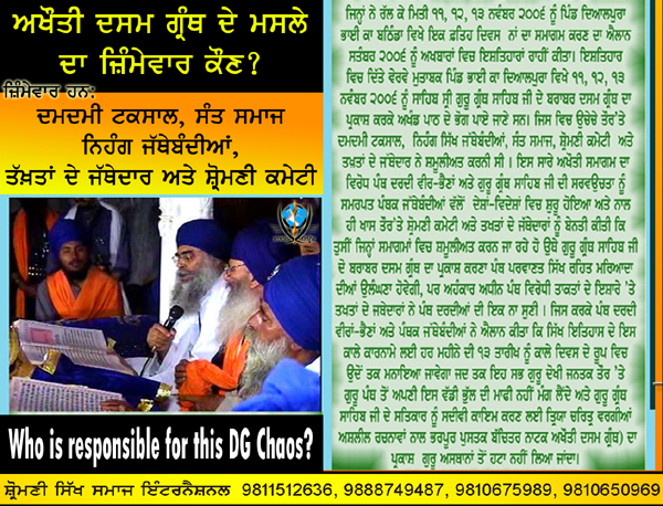 ਜਿਸ ਵਿੱਚ ਵੀ ਇਹੀ ਕਿਹਾ ਗਿਆ...ਤਾਂ ਫਿਰ ਅਖੌਤੀ ਟਕਸਾਲ ਕਿਉਂ ਕਰਦੀ ਹੈ, ਦੋ ਬਾਹਰਲੇ