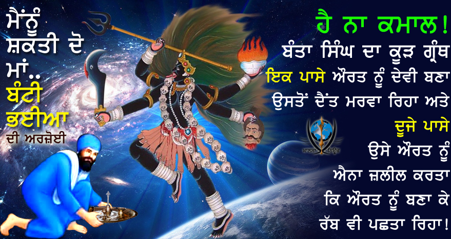 ਉਸੇ ਔਰਤ ਨੂੰ ਦੇਵੀ (ਭਗਉਤੀ) ਬਣਾ ਕਿ ਉਸਤੋਂ ਦੈਂਤ ਮਰਵਾ ਲਏ ਅਤੇ ਦੂਜੇ ਪੰਨੇ ਉਤੇ, ਉਸੇ