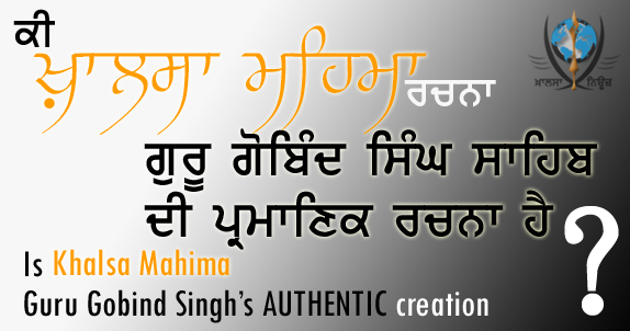 ਜਾਂਦੀ “ਖ਼ਾਲਸਾ ਮਹਿਮਾ” ਜੋ 1765 ਇ. ਵਾਲੀ ਬਚਿੱਤਰ ਨਾਟਕ ਦੀ ਬੀੜ ਵਿੱਚ ਦਰਜ ਹੈ, ਉਸ
