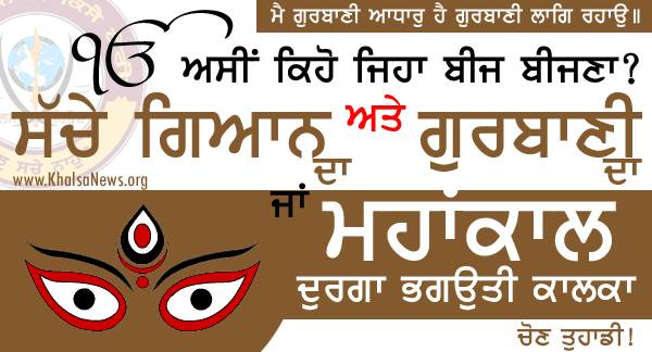 ਸੱਚੇ ਗਿਆਨ ਦਾ ਅਤੇ ਗੁਰਬਾਣੀ ਦਾ ਜਾਂ ਦੁਰਗਾ ਭਗਉਤੀ ਕਾਲਕਾ ਮਹਾਕਾਲ ਦਾ