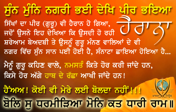ਬੇਅਦਬੀ ਤੇ ਉਸਨੂੰ ਗੁਰੂ ਮੰਨਣ ਵਾਲਿਆਂ ਦੇ ਵੀ ਨਗਰ ਵਿੱਚ ਸੁੰਨ ਸਾਨ ਪਈ ਹੋਈ ਹੈ,