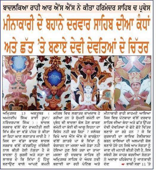 ਅੰਮ੍ਰਿਤਸਰ ਦੀ ਉਪਰਲੀ ਛੱਤ 'ਤੇ ਪੇਂਟਿੰਗ ਦੇ ਬਹਾਨੇ ਬਣਾਈਆਂ ਜਾ ਰਹੀਆਂ ਹਿੰਦੂ ਦੇਵੀ