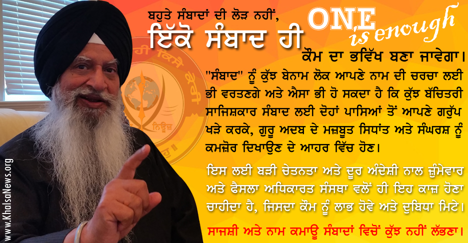ਇਕੋ ਸੰਬਾਦ ਹੀ ਕੌਮ ਦਾ ਭਵਿੱਖ ਬਣਾ ਜਾਵੇਗਾ।
