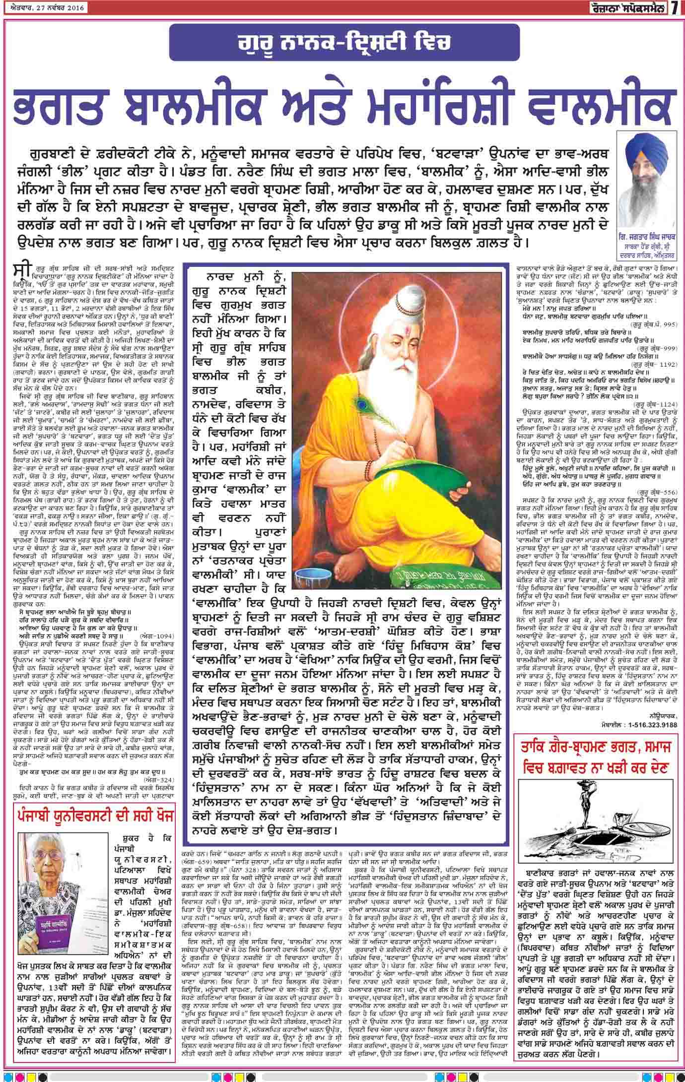 ਲਈ ਬਾਲਮੀਕੀਆਂ ਸਮੇਤ ਸਮੁੱਚੇ ਪੰਜਾਬੀ ਭਾਈਚਾਰੇ ਨੂੰ ਸੁਚੇਤ ਰਹਿਣ ਦੀ ਲੋੜ ਹੈ ਤਾਂ ਕਿ