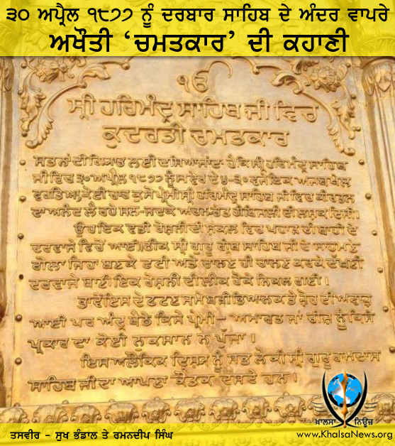 ਹੋਰ ਉਨ੍ਹਾਂ ਨੇ ਦਰਬਾਰ ਸਾਹਿਬ ਵਿਚ ਇਸ ਘਟਨਾ ਨੂੰ ਲਿਖਤੀ ਰੂਪ ਵਿਚ