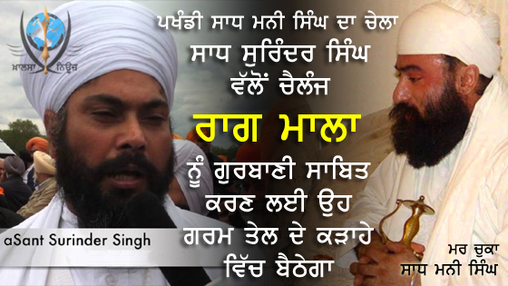 ਮਾਲਾ ਨੂੰ ਗੁਰਬਾਣੀ ਸਿੱਧ ਕਰਣ ਲਈ ਸਾਧ ਸੁਰਿੰਦਰ ਸਿੰਘ ਤੇਲ ਦੇ ਕੜਾਹੇ ਵਿੱਚ ਬੈਠੇਗਾ