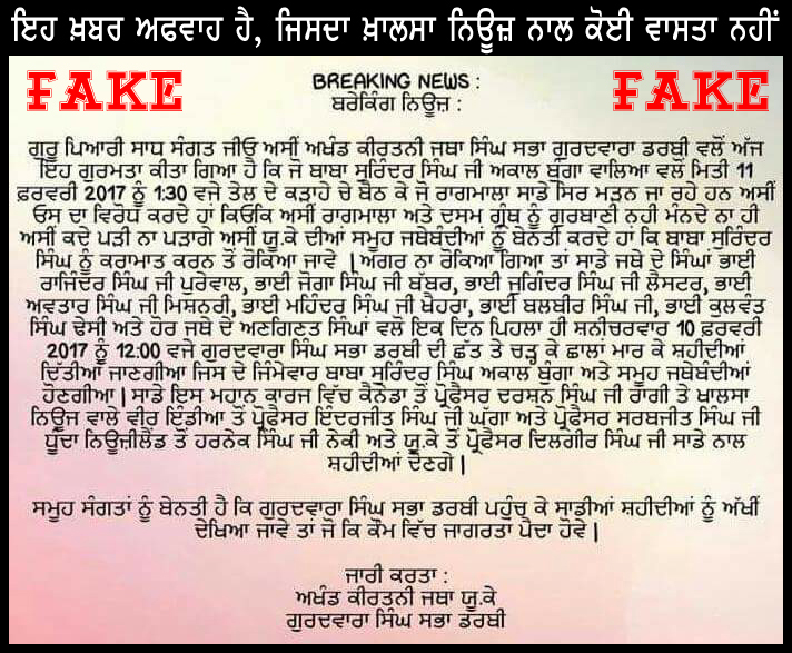 ਪੋਸਟਰ ਦੀ ਬਨਾਵਟ ਤੇ ਦਿਤੇ ਬਿਆਨ ਝੂਠ 'ਤੇ ਆਧਾਰਿਤ ਹਨ, ਤੇ ਇਸ ਨਾਲ ਕਿਸੇ