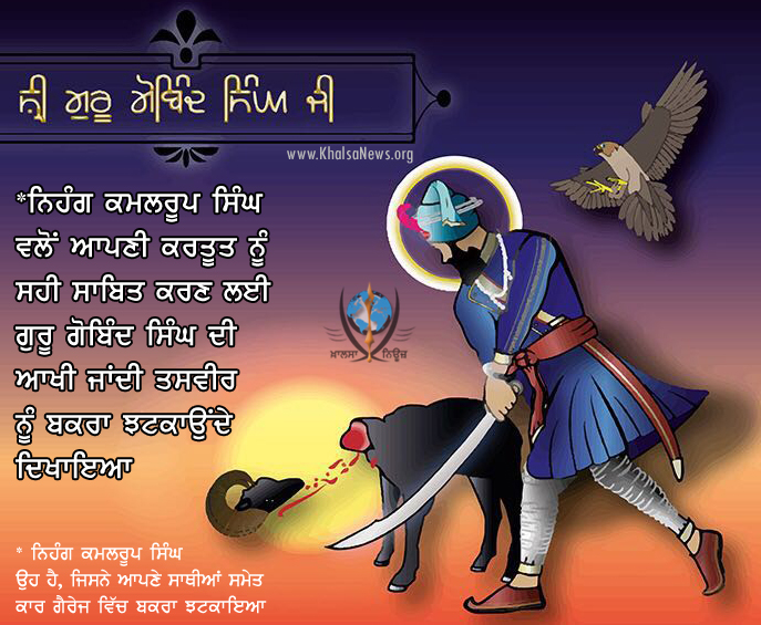 ਇੱਕ ਤਸਵੀਰ ਬਣਾਈ ਜਿਸ ਵਿੱਚ ਗੁਰੂ ਗੋਬਿੰਦ ਸਾਹਿਬ ਨੂੰ ਇੱਕ ਬਕਰਾ