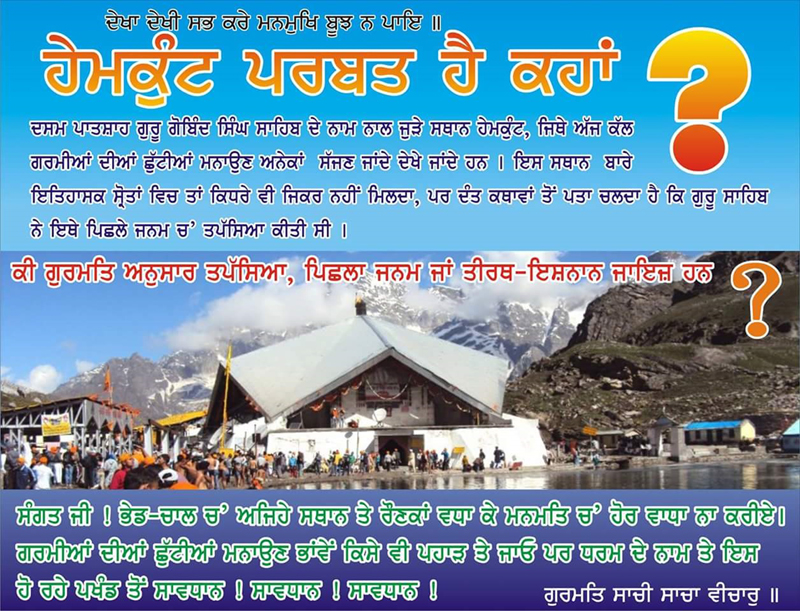 ਆਓ ! ਧਾਰਮਿਕ ਤੇ ਬੌਧਿਕ ਤੌਰ 'ਤੇ ਗਿਆਨਵਾਨ / ਰਿਸ਼ਟ ਪੁਸ਼ਟ ਬਣ ਕੇ ਅਜਿਹੇ ਫਰਜੀ ਸਥਾਨਾਂ ਦਾ ਬਾਈਕਾਟ ਕਰ ਕੇ ਮਨਮਤਿ ਨੂੰ ਠੱਲ੍ਹ ਪਾਉਣ ਵਿੱਚ ਆਪਣਾ ਯੋਗਦਾਨ ਪਾਈਏ ਤੇ ਅਖੌਤੀ ਹੇਮਕੁੰਟ ਨੂੰ ਆਪਣੇ ਗੁਰੂ ਸਾਹਿਬ ਨਾਲ ਬਦੋਬਦੀ ਜੋੜ ਕੇ ਪਿਛਲੇ ਜਨਮ ਦੇ ਪਾਏ ਜਾ ਰਹੇ ਭੁਲੇਖੇ ਅਤੇ ਝੂਠੇ ਪ੍ਰਚਾਰ ਤੋਂ ਸੁਚੇਤ ਹੋ ਕੇ ਅੰਤਿਮ ਹੁਕਮਾਂ ਨੂੰ ਮੰਨਣ ਦਾ ਯਤਨ ਕਰੀਏ, ਜਿਸ ਨੂੰ ਗਿਆਨੀ ਗਿਆਨ ਸਿੰਘ ਨੇ ਇਉਂ ਕਲਮਬੱਧ ਕੀਤੈ.....