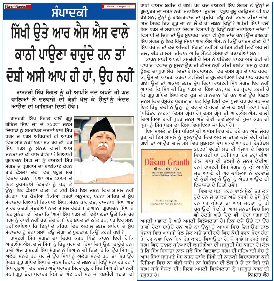 ਸਿੱਖੀ ਉਤੇ ਆਰ.ਐਸ.ਐਸ. ਵਾਲੇ ਕਾਠੀ ਪਾਉਣਾ ਚਾਹੁੰਦੇ ਹਨ, ਤਾਂ ਦੋਸ਼ੀ ਅਸੀਂ ਆਪ ਹੀ ਹਾਂ, ਉਹ ਨਹੀਂ