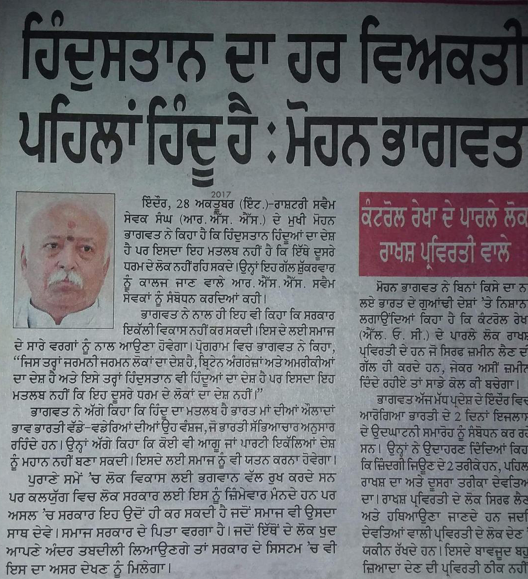 ਭਾਗਵਤ ਜੀ ਪਹਿਲਾਂ ਦੁਨੀਆਂ ਦੇ ਨਕਸ਼ੇ 'ਤੇ ਹਿੰਦੁਸਤਾਨ ਖੋਜ ਲਵੋ