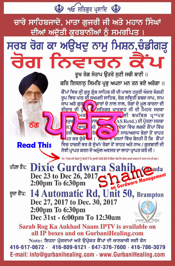 'ਤੇ "ਸਰਬ ਰੋਗ ਕਾ ਅਉਖਦੁ ਨਾਮੁ ਮਿਸ਼ਨ" ਵੱਲੋਂ ਫੈਲਾਇਆ ਜਾ ਰਿਹਾ ਪਖੰਡ