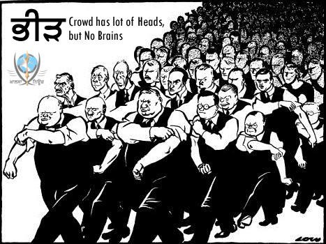 ਭੀੜ ਦਾ ਕਦੇ ਹਿੱਸਾ ਨਾ ਬਣੋ, ਭੀੜ ਭਾਵਨਾਵਾਂ ਵਿੱਚ ਛੇਤੀ ਵਹਿਣ ਵਾਲਿਆਂ ਦੇ ਇੱਕਠ ਤੋਂ ਬਣਦੀ ਹੈ, ਭੀੜ ਵਿੱਚ ਸ਼ਾਮਿਲ ਜੇ ਅੱਜ ਤੁਸੀਂ ਕਿਸੇ ਦੇ ਖਿਲਾਫ ਨਫਰਤ 'ਤੇ ਉਤਾਰਾ ਹੋ.. ਸਿਰਫ ਇਸ ਕਰਕੇ ਕਿ ਉਸ ਦੇ ਵਿਚਾਰ ਤੁਹਾਡੇ ਤੋਂ ਭਿੰਨ ਹਨ, ਤਾਂ ਯਾਦ ਰੱਖਿਓ ਕੱਲ ਨੂੰ ਇਹ ਭੀੜ ਤੁਹਾਡੇ ਖਿਲਾਫ ਵੀ ਉੱਠ ਖੜੀ ਹੋਵੇਗੀ, ਜਦੋਂ ਤੁਹਾਡੇ ਵਿਚਾਰ ਕਿਸੇ ਮੁੱਦੇ 'ਤੇ ਇਨ੍ਹਾਂ ਤੋਂ ਭਿੰਨ ਹੋਏ, ਤੱਦ ਇਸ ਭੀੜ ਦੀ ਨਫਰਤ ਦੇ ਸ਼ਿਕਾਰ ਉਹ ਇੱਕਲੇ ਸ਼ਖਸ ਤੁਸੀਂ ਵੀ ਹੋ ਸਕਦੇ ਹੋ.......... ਕਿਉਂਕਿ ਭੀੜ ਦਾ ਕੋਈ ਦਿਮਾਗ ਨਹੀਂ ਹੁੰਦਾ ...