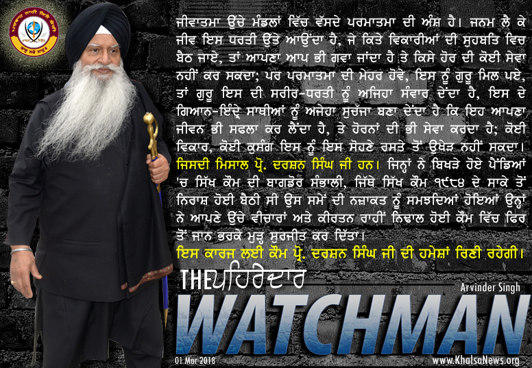 ਜਿਸਦੀ ਮਿਸਾਲ ਪ੍ਰੋ. ਦਰਸ਼ਨ ਸਿੰਘ ਜੀ ਹਨ। ਜਿਹਨਾਂ