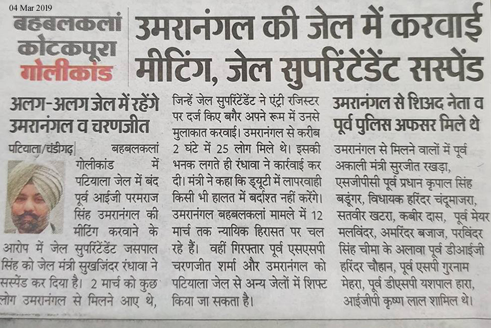 ਕਾਂਡ ਵਿਚ ਗ੍ਰਿਫਤਾਰ ਕੀਤੇ ਗਏ ਸਾਬਕਾ ਪੁਲਿਸ ਅਫਸਰਾਂ ਕਰਕੇ ਪਟਿਆਲਾ ਜੇਲ੍ਹ ਤਾਂ ਅਕਾਲੀ