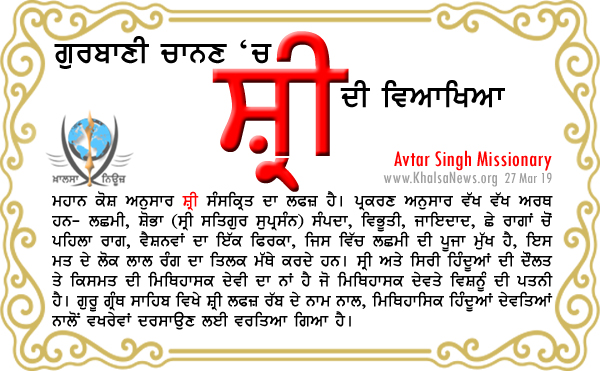 ਆਗੂ ਅਤੇ ਕਚਘਰੜ ਲਿਖਾਰੀ ਵੀ ਸ਼੍ਰੀ ਲਫਜ਼ ਨੂੰ ਇਸ ਦਾ ਪਿਛੋਕੜ ਜਾਣੇ ਬਿਨਾ, ਇਸ