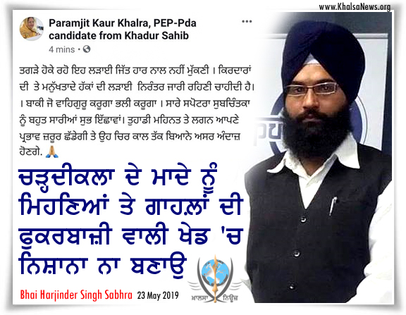 ਹਰਫਲੇ ਹੋ ਕੇ ਲਿਖ ਬੋਲ ਰਹੇ ਸਨ। ਤੇ ਹੁਣ ਬੀਬੀ ਖਾਲੜਾ ਦੇ ਚੋਣ 'ਚ ਜਿੱਤ ਤੋਂ ਦੂਰ ਰਹਿ