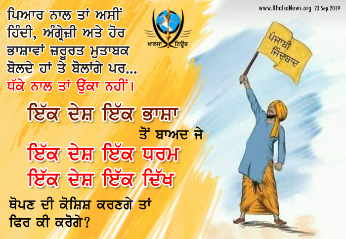 "ਇੱਕ ਦੇਸ਼ ਇੱਕ ਬੋਲੀ ਇੱਕ ਸੱਭਿਆਚਾਰ।