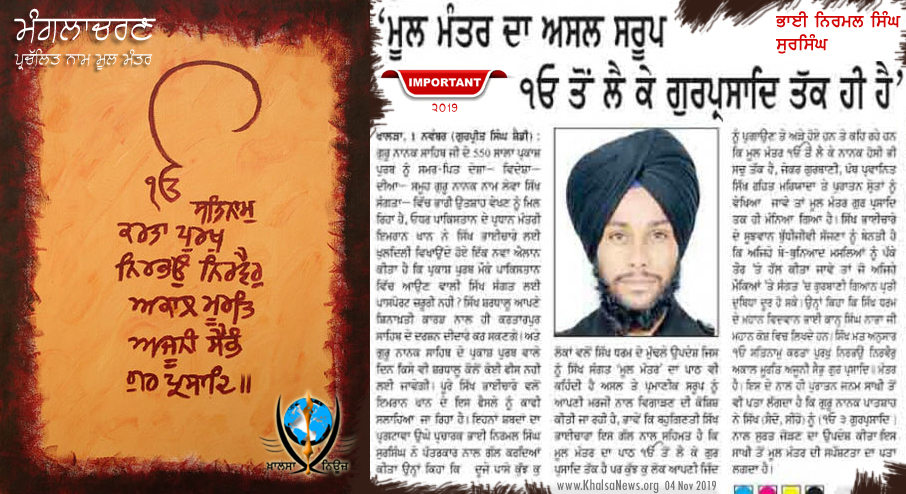 ਰਿਹਾ । ਹੱਥਲੇ ਮਜ਼ਮੂਨ ਰਾਹੀਂ ਵੀ ਮੂਲ ਮੰਤਰ ਸਬੰਧੀ ਭੁਲੇਖੇ ਨੂੰ ਦੂਰ ਕਰਨ ਦਾ ਯਤਨ ਕੀਤਾ
