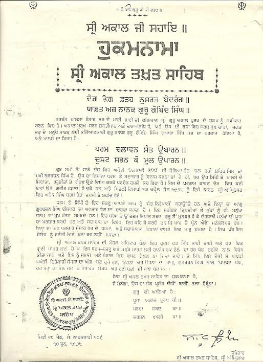 ਕਿੱਥੇ ਗਿਆ ਉਹ ਹੁਕਮਨਾਮਾ ਜਿਹੜਾ ਸਿੱਖ ਨੂੰ ਨਿਰੰਕਾਰੀਆਂ