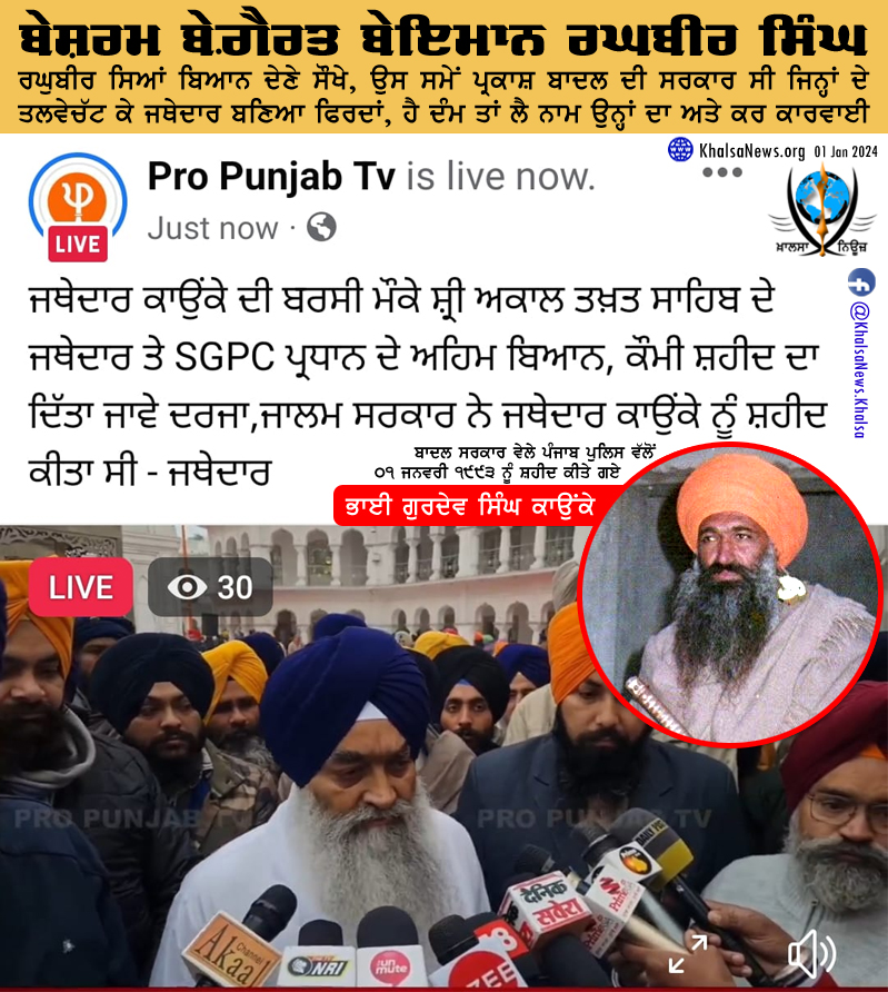 ਨਾਲ ਗੱਲਬਾਤ ਕਰਦੇ ਕਿਹਾ ਕਿ ਪਿਛਲੇ 3 ਦਹਾਕਿਆਂ ਤੋਂ ਸ੍ਰੀ ਅਕਾਲ ਤਖਤ ਸਾਹਿਬ ਦੇ ਸਾਬਕਾ